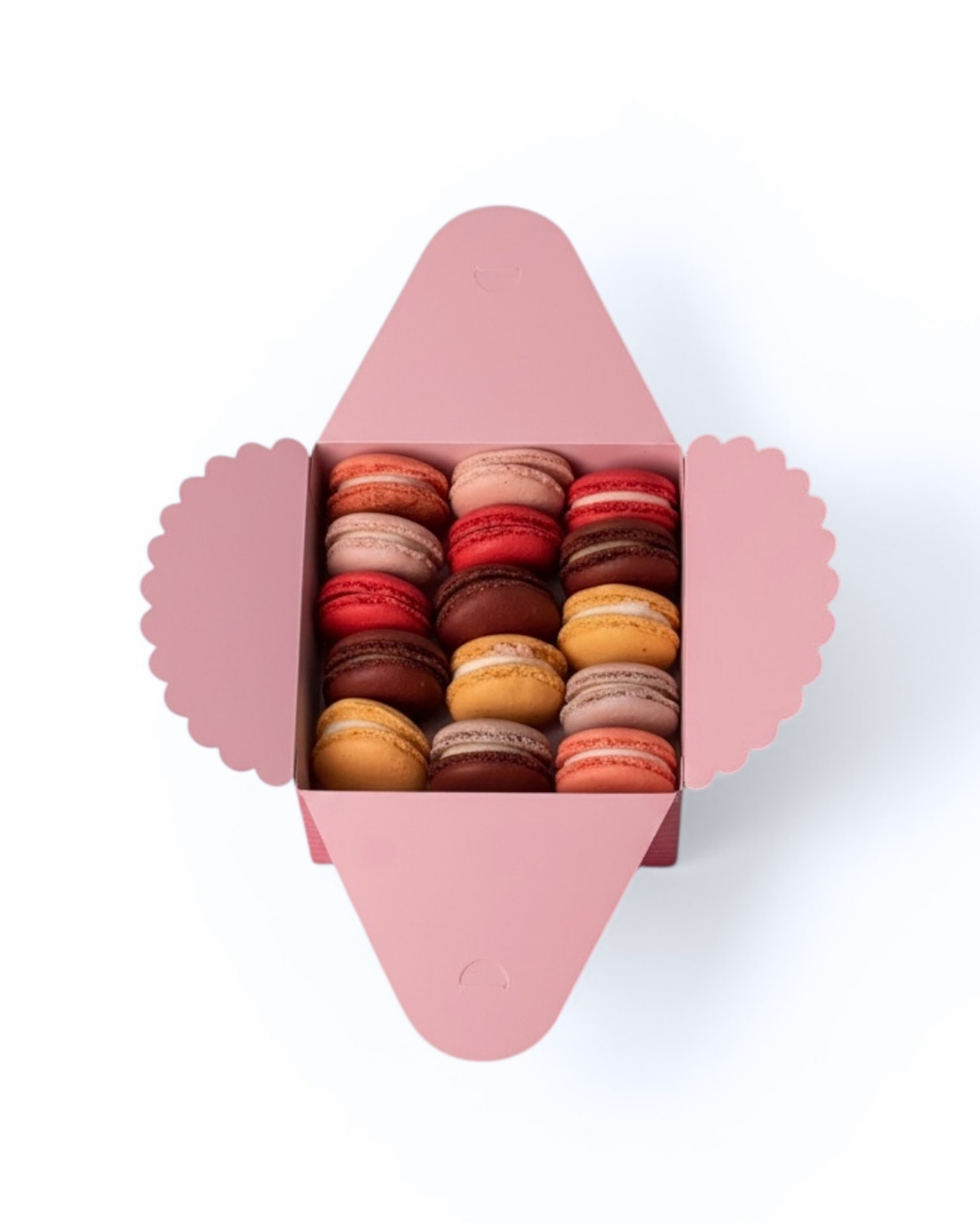 Assortiment de 50 macarons au choix parmi les parfums suivants : Framboise, pistache, vanille, citron, chocolat, café et tartineo